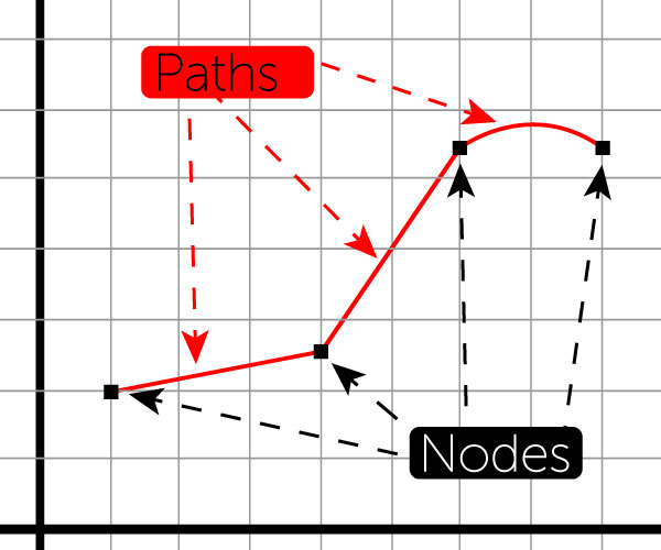 Raster art is created from taking a single block or pixel. When hundreds, thousands or more of these blocks are put side by side in a grid it can create an image. Think Lego bocks but on a smaller scale. Digital cameras create images this way. Millions of pixels (megapixel) of varying colors on a grid create the image. Vector art is built using paths and nodes. Go back to your time in Algebra class. When using a grid you would put points on a graph and draw lines between them. The points are the nodes and the lines are the paths (Figure 1). Vector art is created the same way. Points are connected and filled with color. It sounds simple but vector art has gotten very complex and near photo realistic art can now be created using vector images. The catch is that it must be drawn and cannot be captured with the snap of a camera. There are programs out there that can autotrace images where the computer goes in and redraws the image. These images are far from perfect and often times the computer redraws don’t match what the image was intended to look like and have small random spots of colors that don’t work well to reproduce.